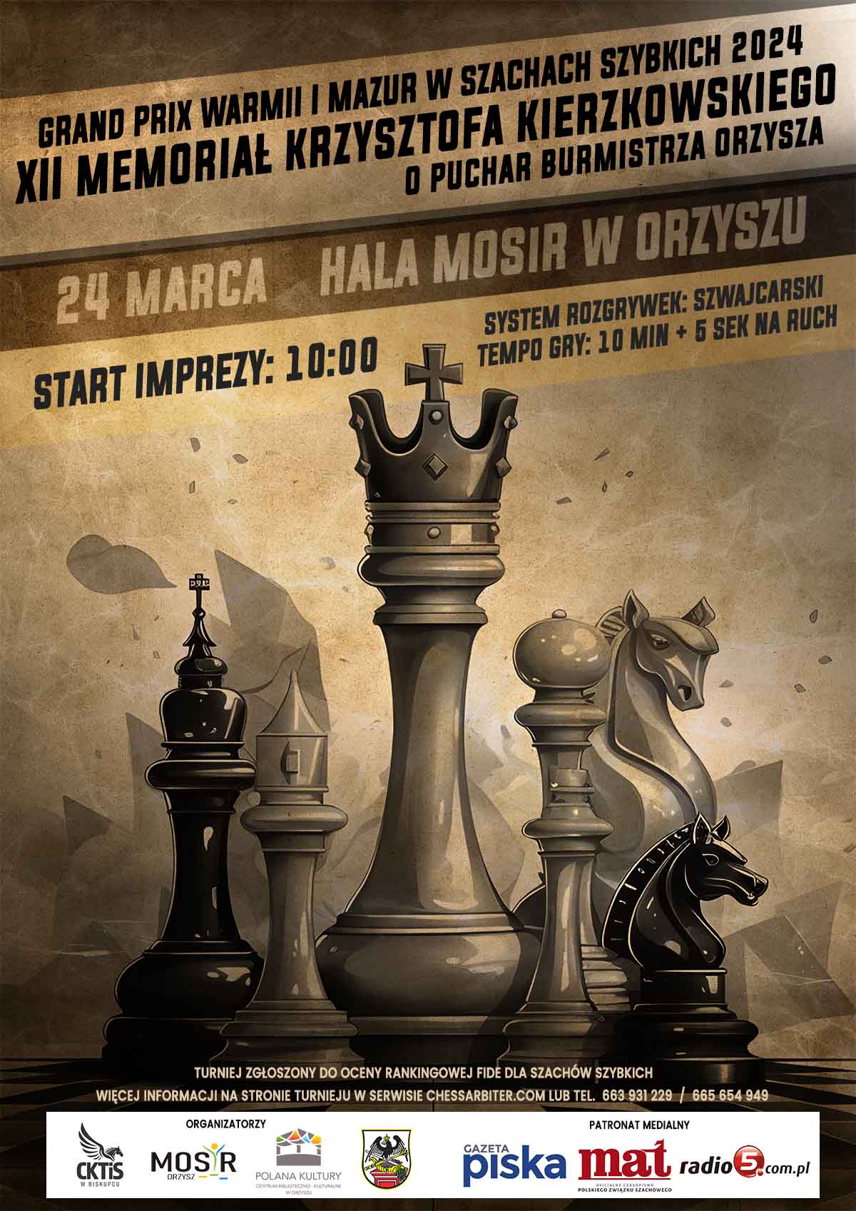Centrum Kultury, Turystyki i Sportu w Biskupcu - organizator cyklu GP Warmii i Mazur w Szachach Szybkich 2024