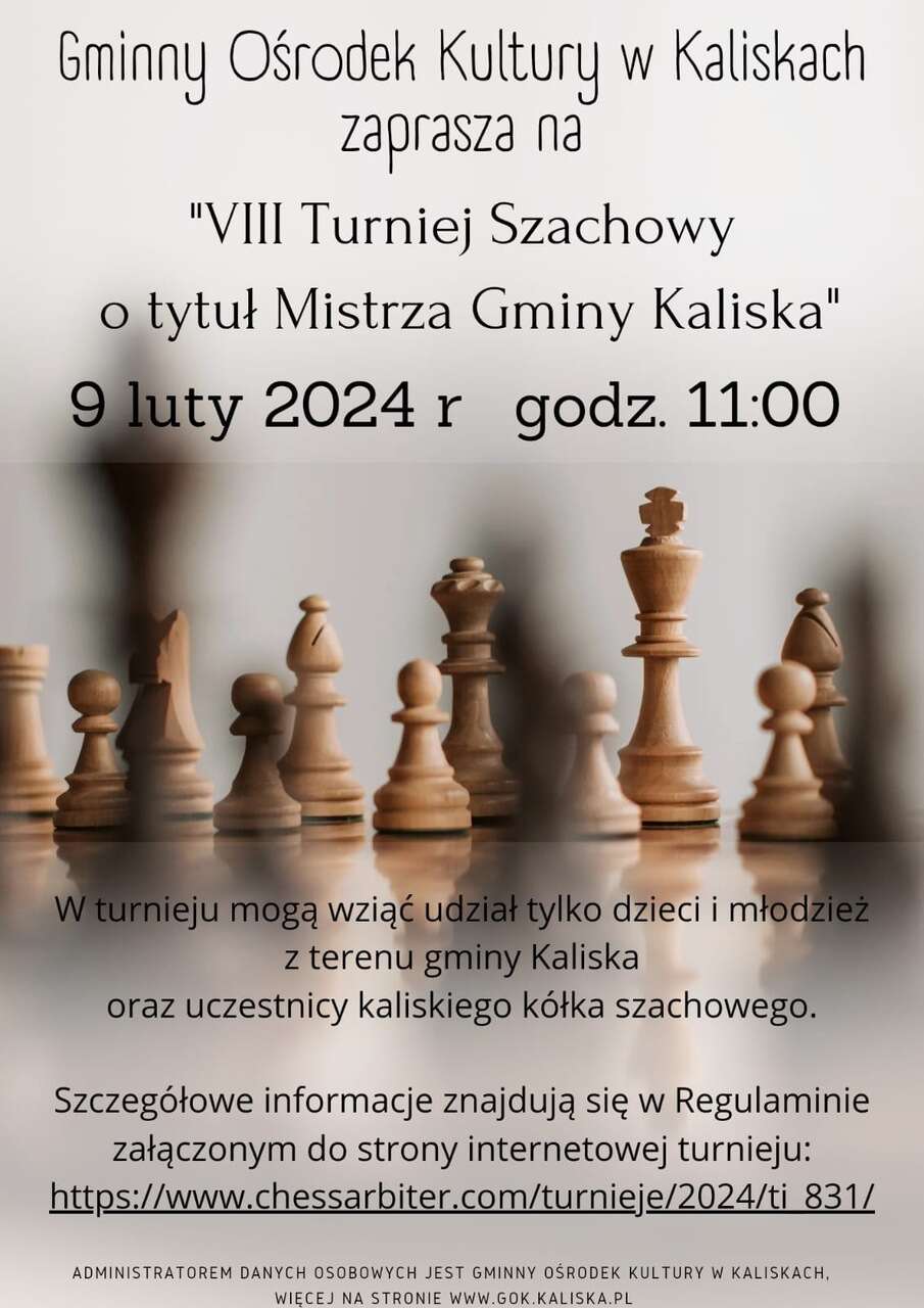 W turnieju mogą wziąć udział tylko dzieci i młodzież z terenu gminy Kaliska oraz uczestnicy kaliskiego kółka szachowego |