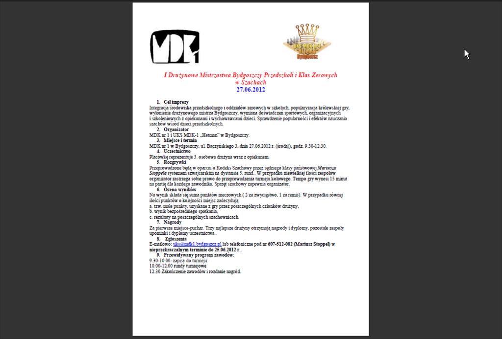 | Organizator | MDK nr 1 Bydgoszcz |