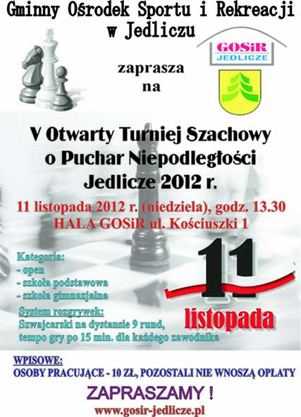 V Otwarty Turniej Szachowy o Puchar Niepodległości Jedlicze 2012 r.