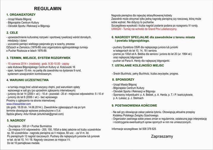 XX Memoriał Aleksandra Bełżka o Puchar Burmistrza
